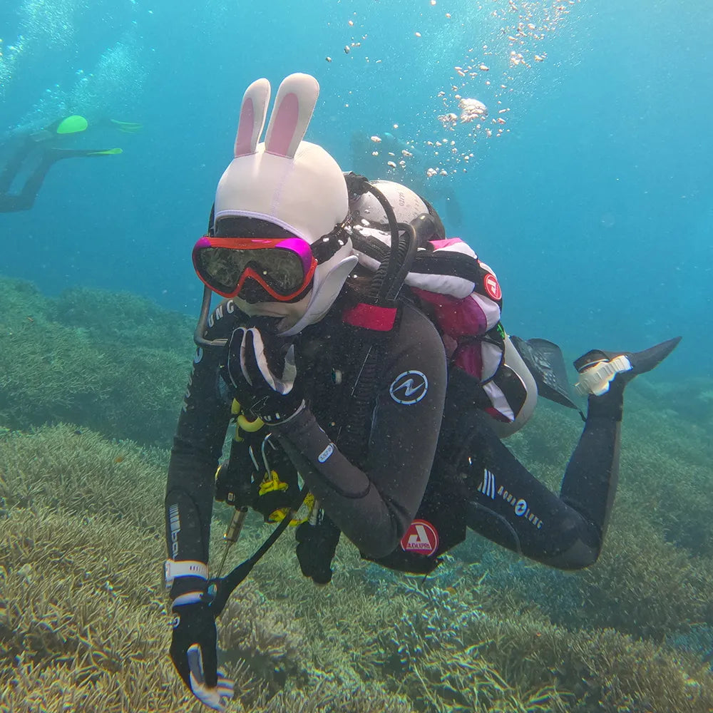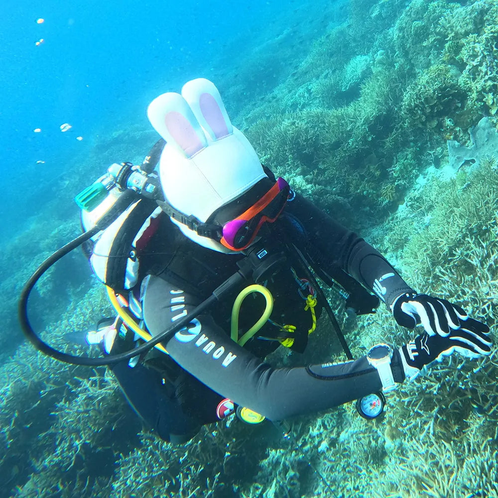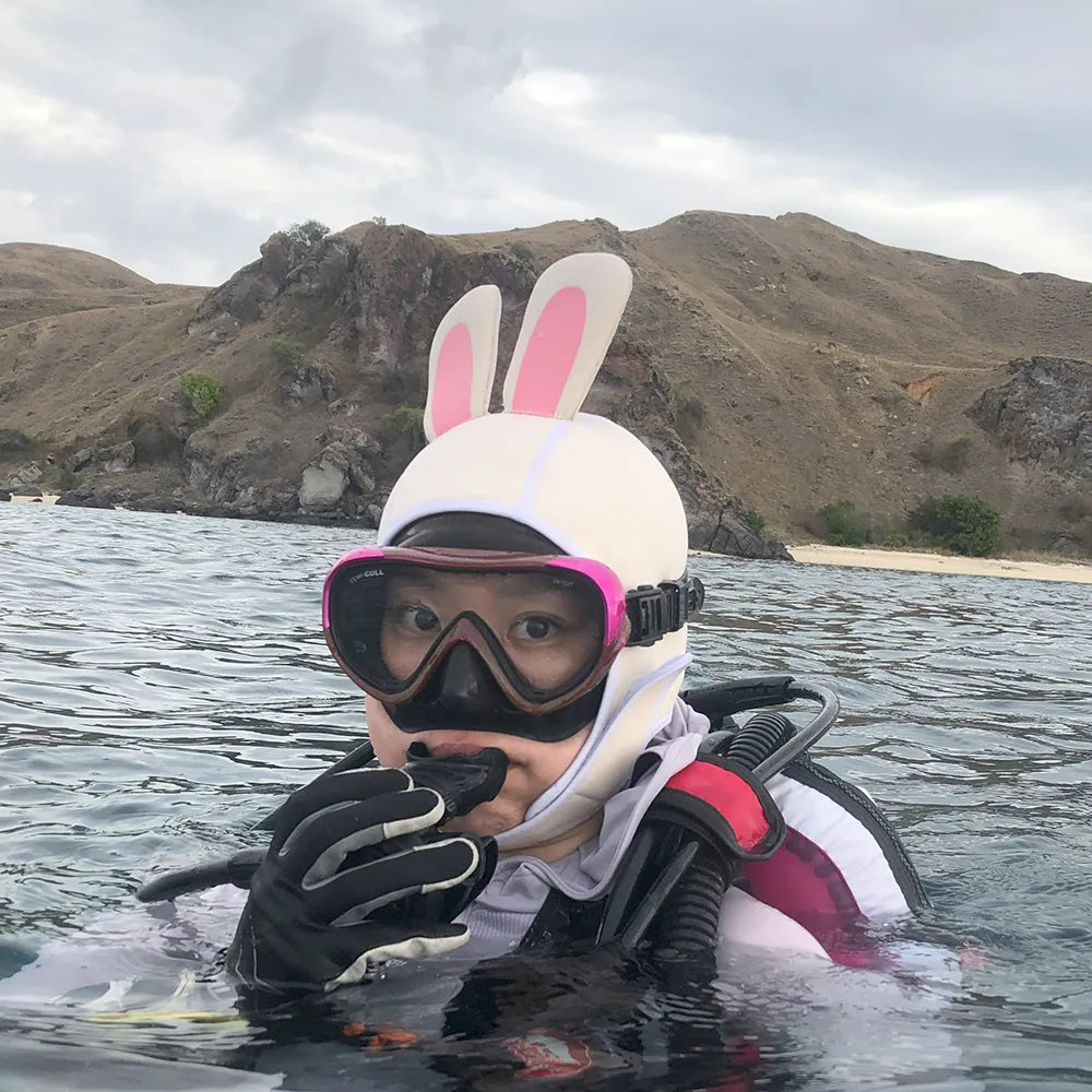 - Cartoon White Rabbit Bunny Wetsuit Hood Design Easily Identified Underwater.